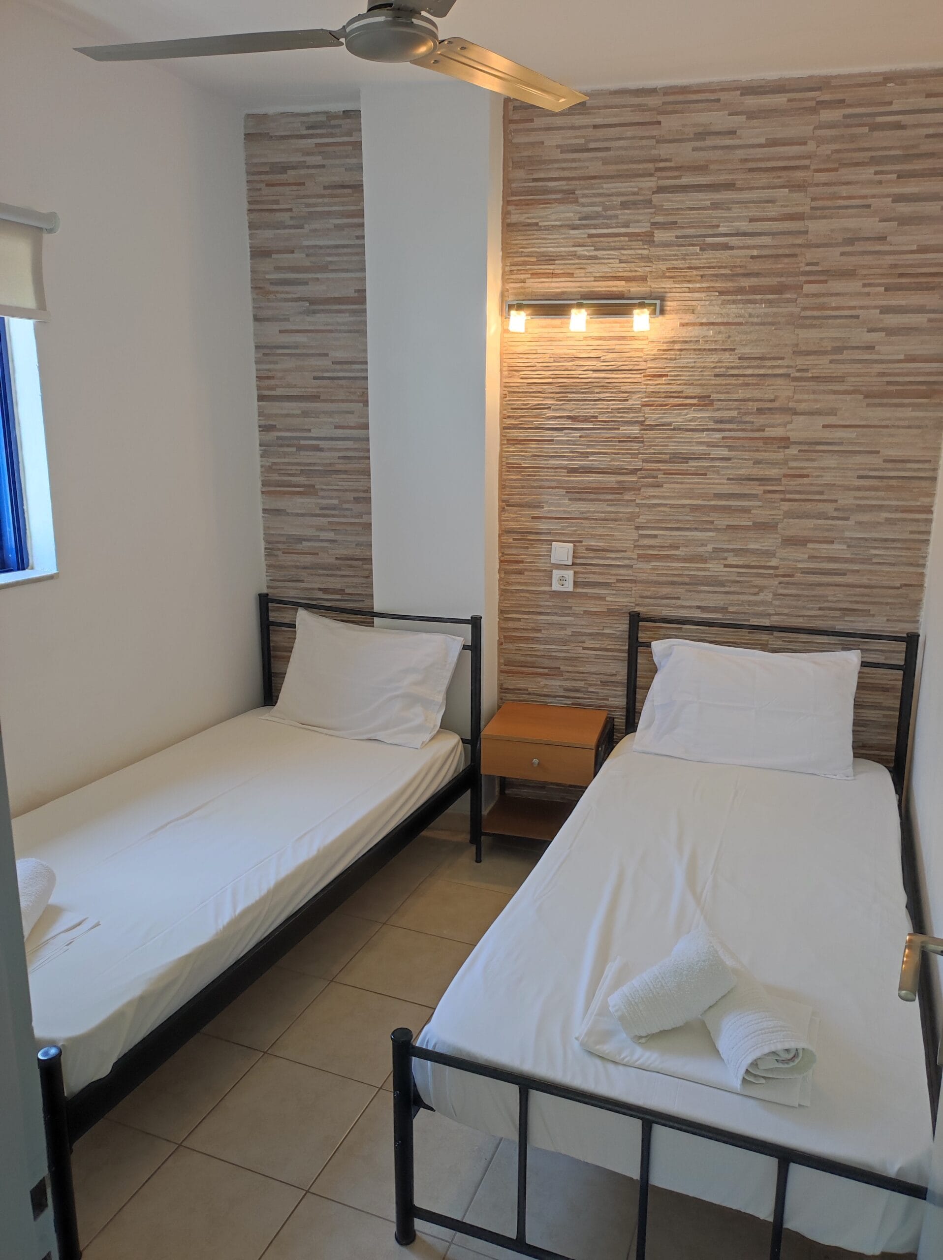 Ξεκινήστε τη μέρα σας με τη θέα του απέραντου γαλάζιου και τον ήχο των κυμάτων να αγκαλιάζει την ψυχή σας. Το δίκλινο δωμάτιο με δύο μονά κρεβάτια είναι ιδανικό για όσους επιθυμούν άνεση, λειτουργικότητα και μια μαγευτική θέα στη θάλασσα.
